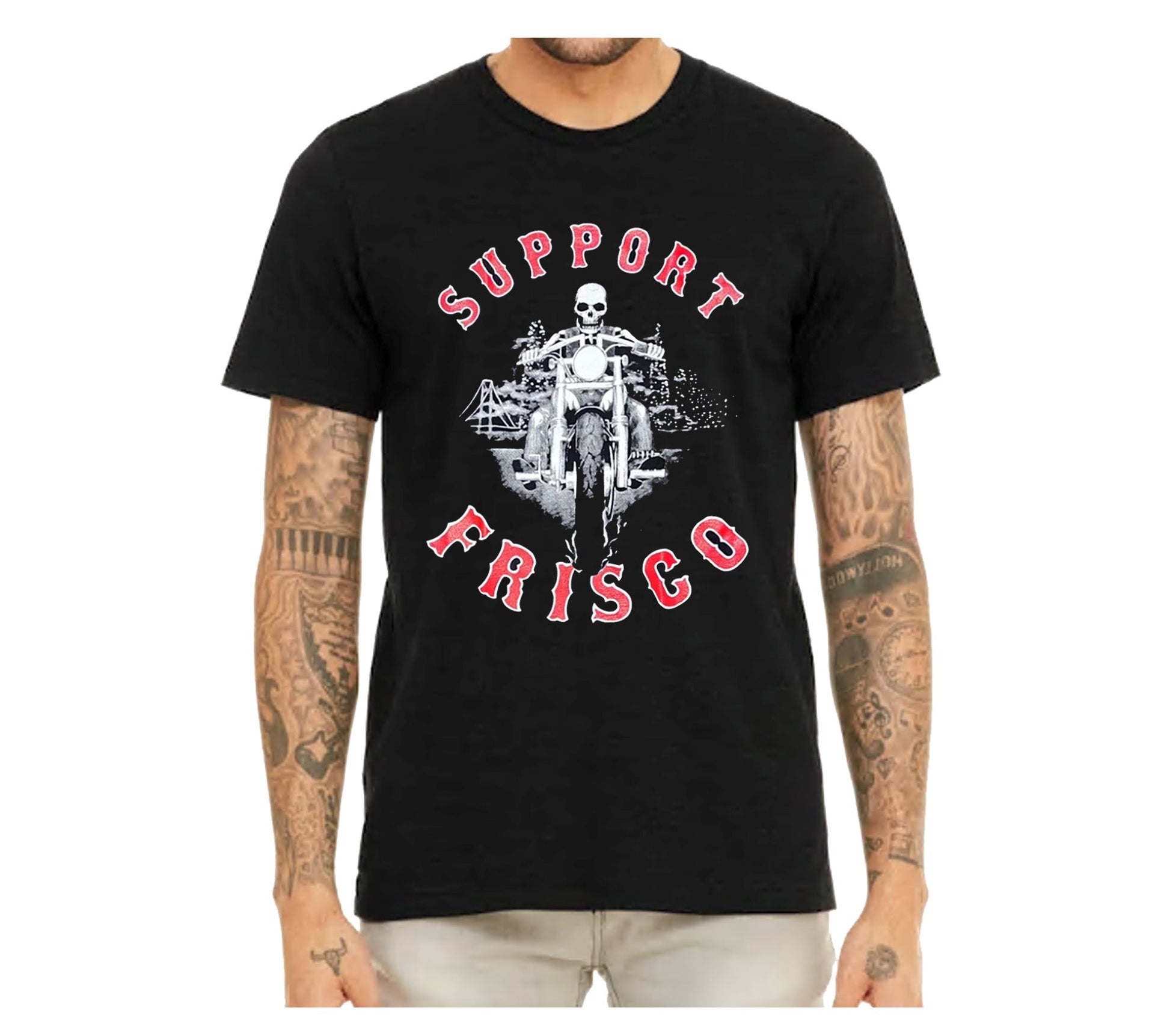 Support Hells Angels Frisco T-Shirt with Skeleton riding a Chopper